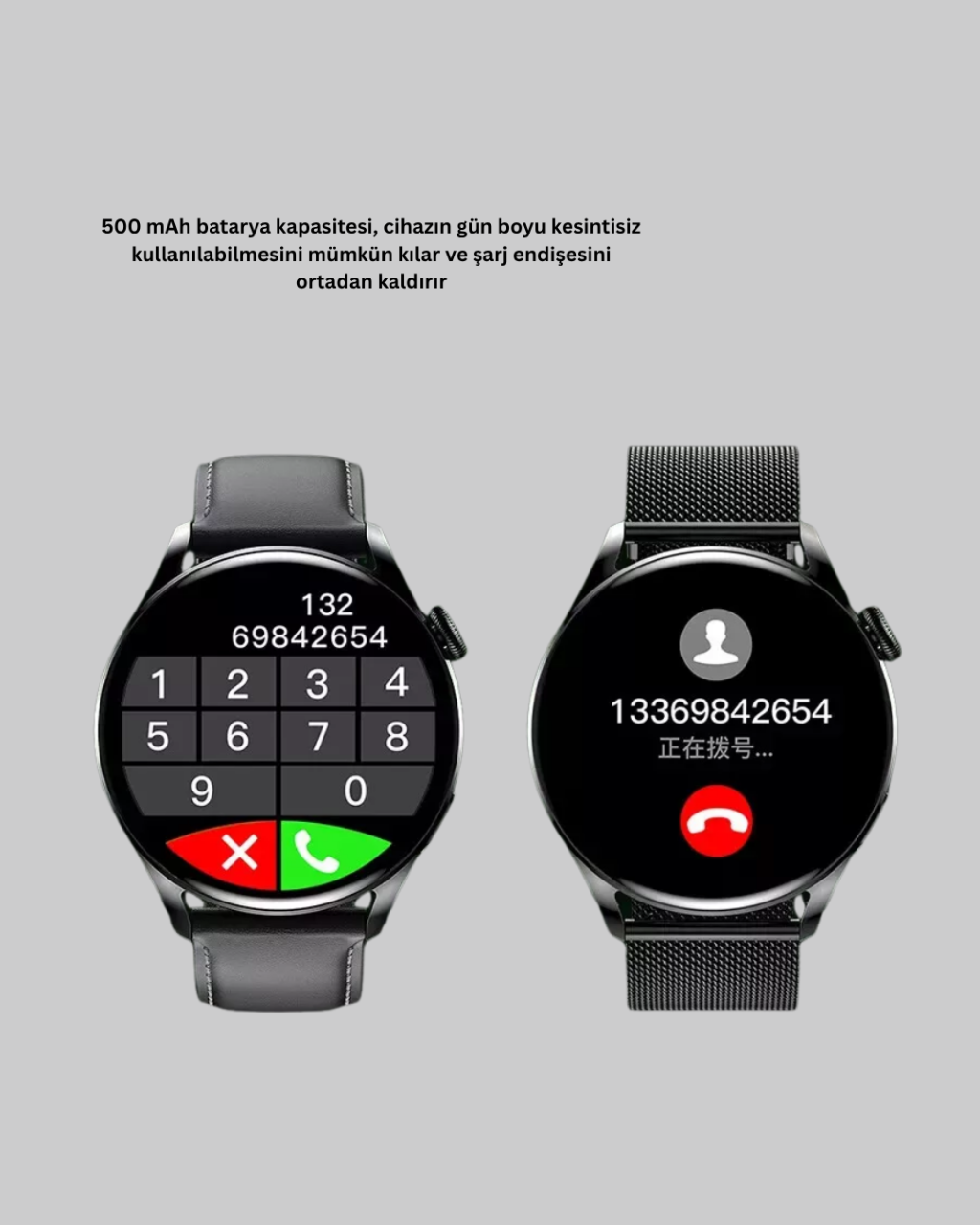 24 ay ithalatçı garantisiyle güvence altına alınan bu gelişmiş akıllı saat, hem fonksiyonel yapısı hem de geniş özellikleriyle günlük yaşamı daha konforlu hale getirmek için tasarlanmıştır. Güçlü teknik altyapısı sayesinde spor, sağlık, iletişim ve kişisel takibi tek bir cihaz üzerinden yönetebilme imkânı sunar. Dahili GPS modülü, konum takibini yüksek doğrulukla yapar ve özellikle dış mekân aktivitelerinde büyük kolaylık sağlar. Koşu, yürüyüş, doğa gezisi veya seyahat sırasında rotanızı takip edebilir, kaybolmadan güvenli şekilde ilerleyebilirsiniz.500 mAh kapasitesindeki güçlü bataryası, cihazın tüm gün boyunca kesintisiz kullanılmasını sağlar. Sık şarj etme zorunluluğunu ortadan kaldıran bu yüksek pil performansı, akıllı saatin günlük aktivitelere rahatlıkla ayak uydurmasına imkân tanır. Cihazın titreşimli bildirim sistemi ise gelen çağrıları, mesajları ve uygulama bildirimlerini anında fark etmenizi sağlar. Böylece telefonunuz çantanızda veya uzak bir noktada olsa bile hiçbir bildirimi kaçırmazsınız.Modern ve şık tasarımlı gövde, iki farklı renk seçeneğine sahip kordonla tamamlanarak hem spor hem klasik kombinlere uyum sağlayan estetik bir görünüm sunar. Saatin sahip olduğu adım sayar özelliği, günlük hareket seviyenizi takip ederek daha aktif bir yaşam tarzı benimsemenize yardımcı olur. Aynı zamanda nabız sensörü, gün içinde kalp atış hızınızı ölçerek sağlığınızı kontrol altında tutmanıza katkı sağlar. Bu sensör özellikle spor yaparken ya da stresli anlarda oldukça işlevseldir.Cihazın uyku takibi fonksiyonu, gece boyunca uyku kalitenizi analiz ederek daha dinlenmiş uyanmanız için size önemli veriler sunar. Hafif uyku, derin uyku ve uyku süresi gibi detayların takibi sayesinde uyku düzeninizi daha bilinçli şekilde yönetebilirsiniz. Akıllı saatin en pratik özelliklerinden biri ise sesli görüşme fonksiyonu. Telefonunuza uzanmadan arama yapabilir, çağrı yanıtlayabilir ve görüşmelerinizi direkt saatten gerçekleştirebilirsiniz.Tüm bu gelişmiş özellikleri bir araya getiren akıllı saat, teknolojiyi günlük yaşamla buluşturan hem şık hem fonksiyonel bir yardımcıdır.