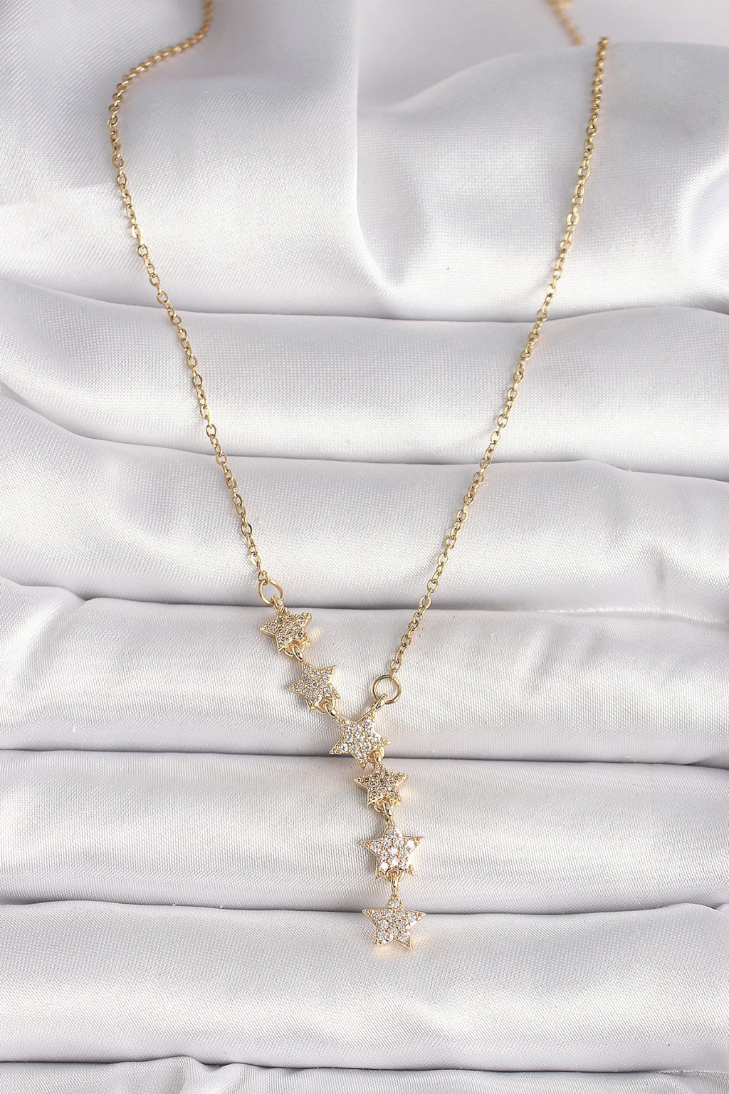 BFS 316L Çelik Gold Renk Zincir Zirkon Taşlı Yıldız Model Kadın Kolye