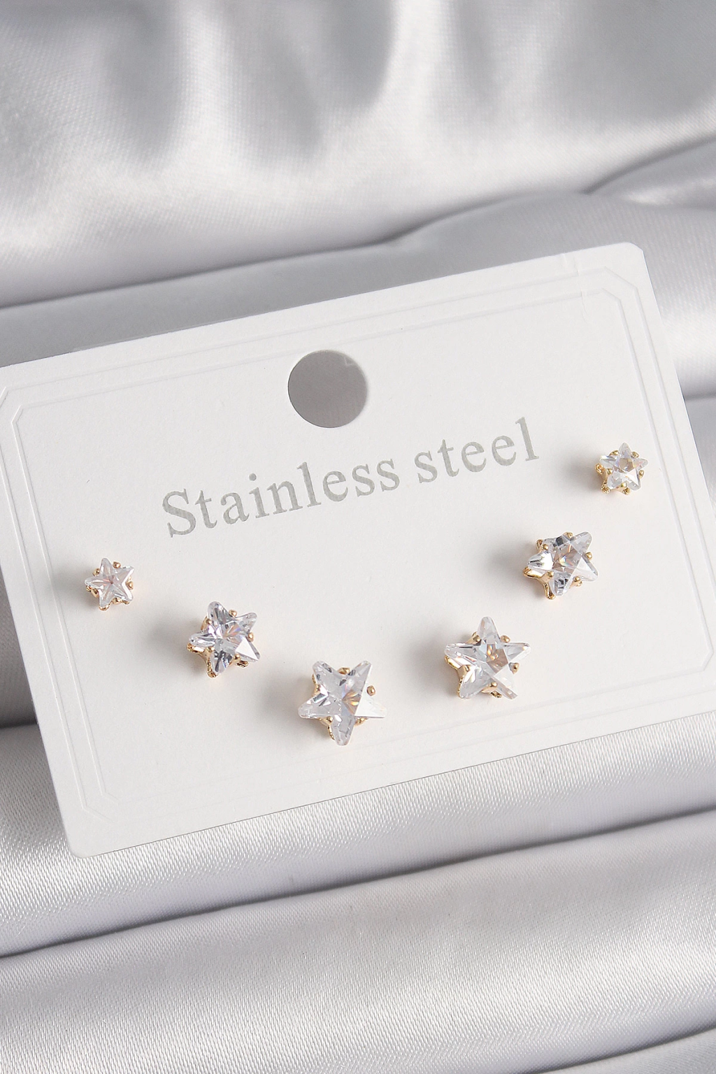 BFS 316L Çelik Gold Renk Zirkon Taşlı Yıldız Model Kadın Küpe Seti