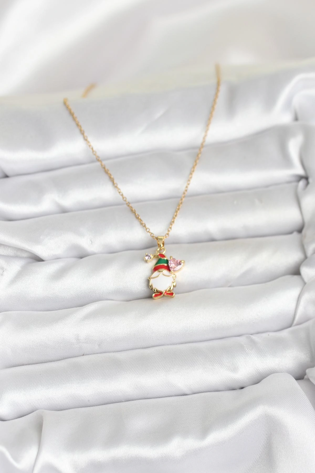 BFS 316L Çelik Zincir Gold Renk Yılbaşı Teması Kadın Kolye
