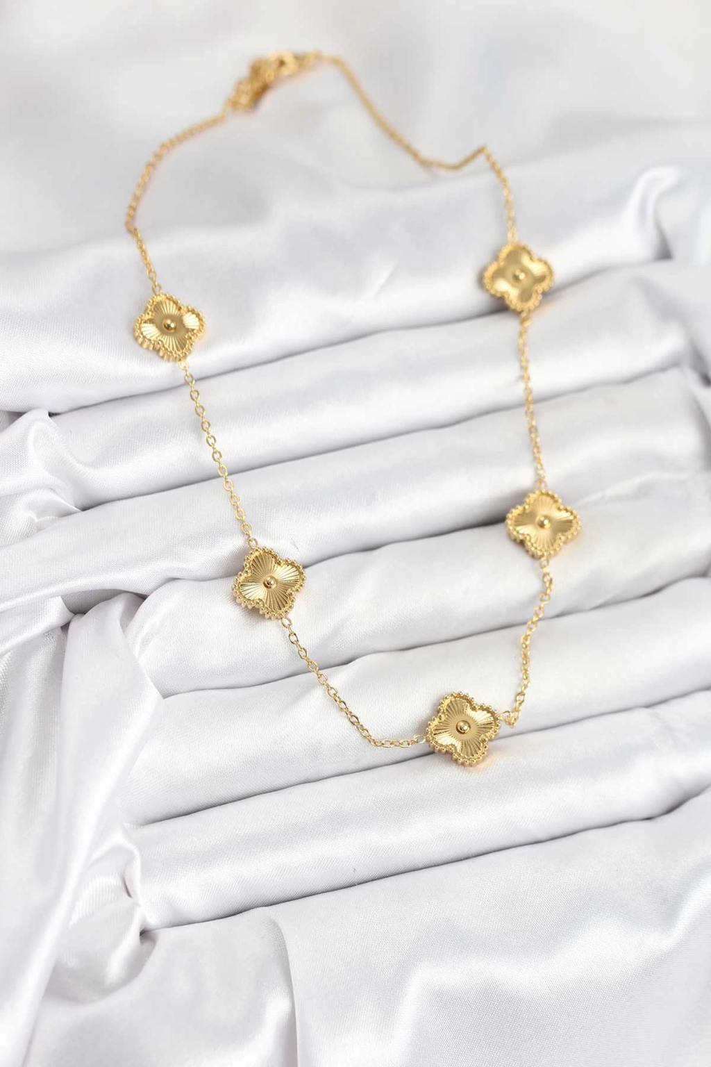 BFS 316L Çelik Zincir Gold Renk Yonca Kadın Kolye