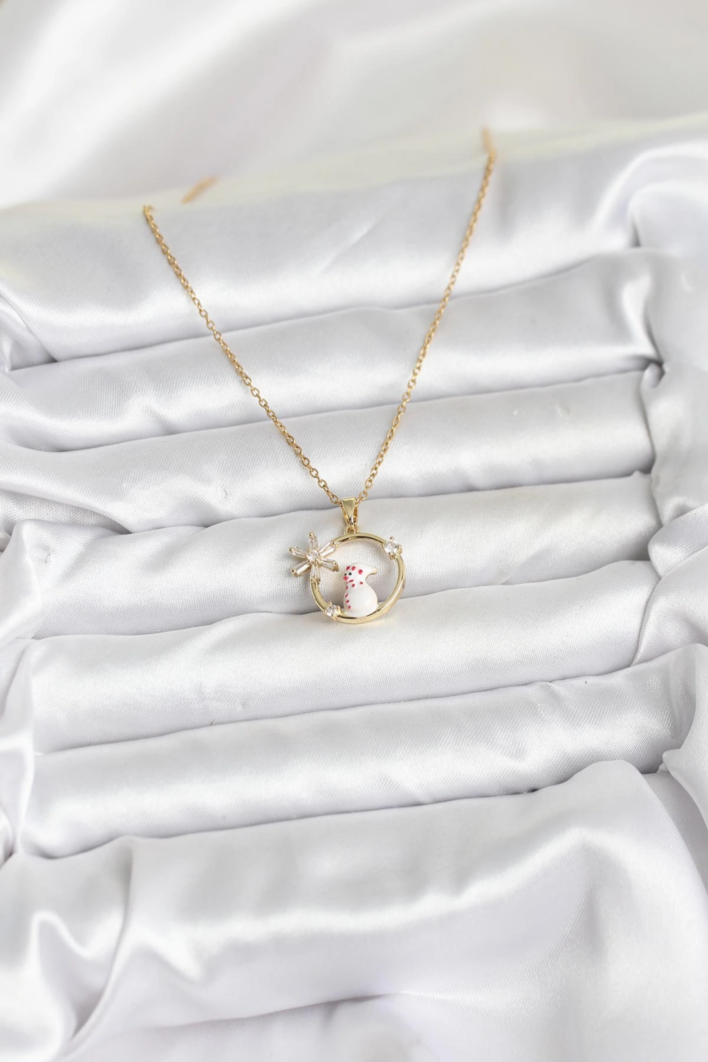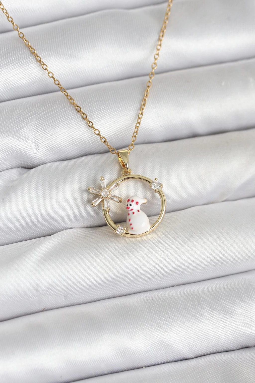 BFS 316L Çelik Zincir Gold Zirkon Taşlı Yılbaşı Temalı Kadın Kolye