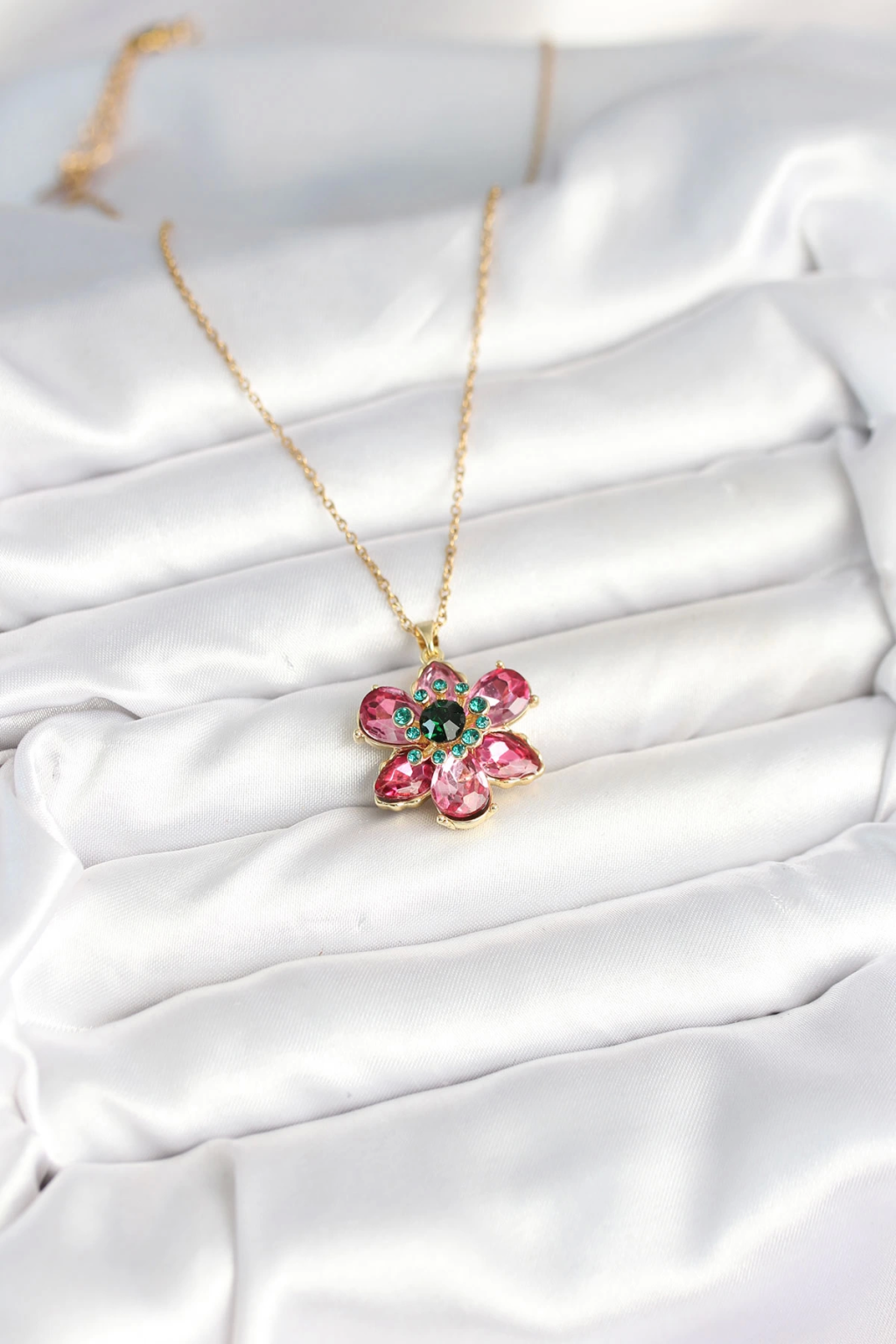 BFS 316L Çelik Zincirli Pembe Çiçek Model Kadın Kolye