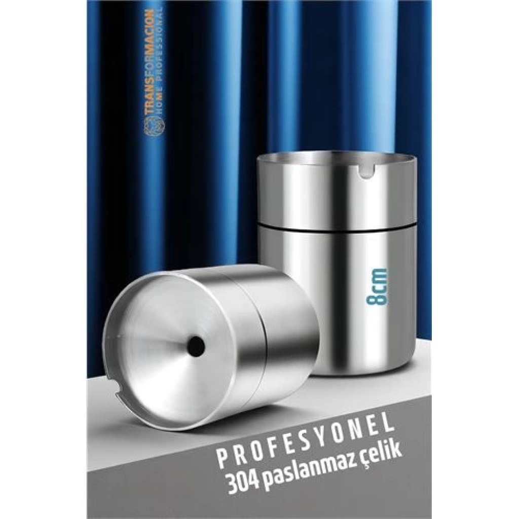 304 Paslanmaz Çelik Kapaklı Küllük – 8 cm x