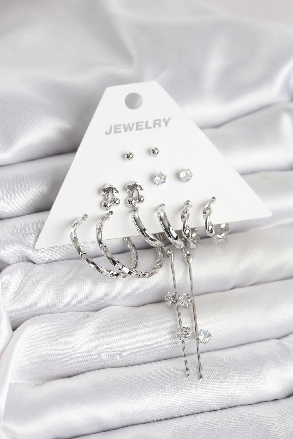BFS Gümüş Renk Pirinç 6'lı Kadın Küpe Seti