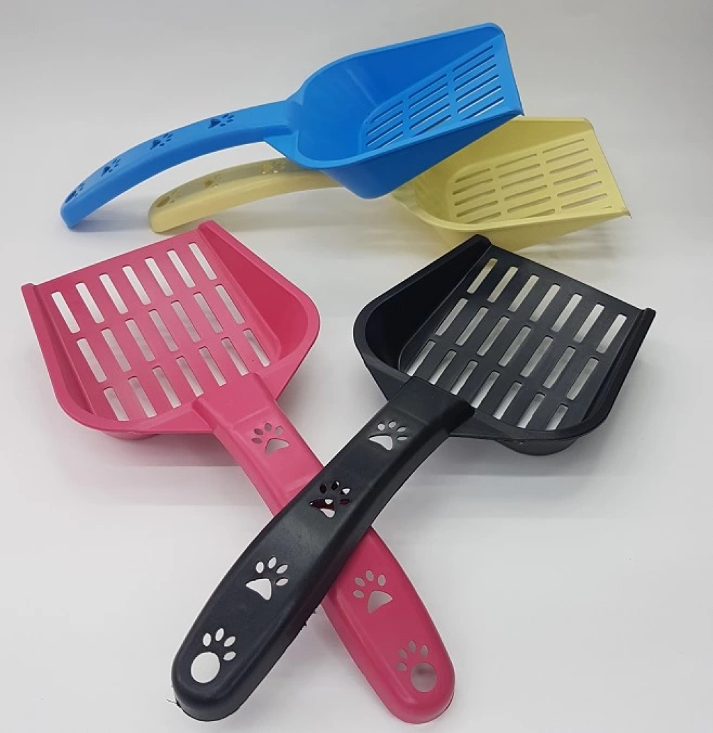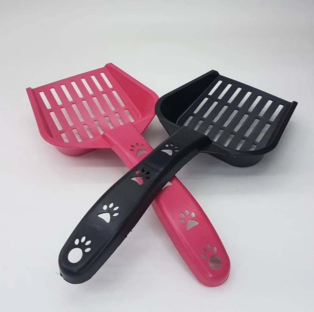 Kedilerin ihtiyaçlarını giderdikten sonra kum kabındaki atıkların temizliğinde kullanılan kedi kum küreğidir.