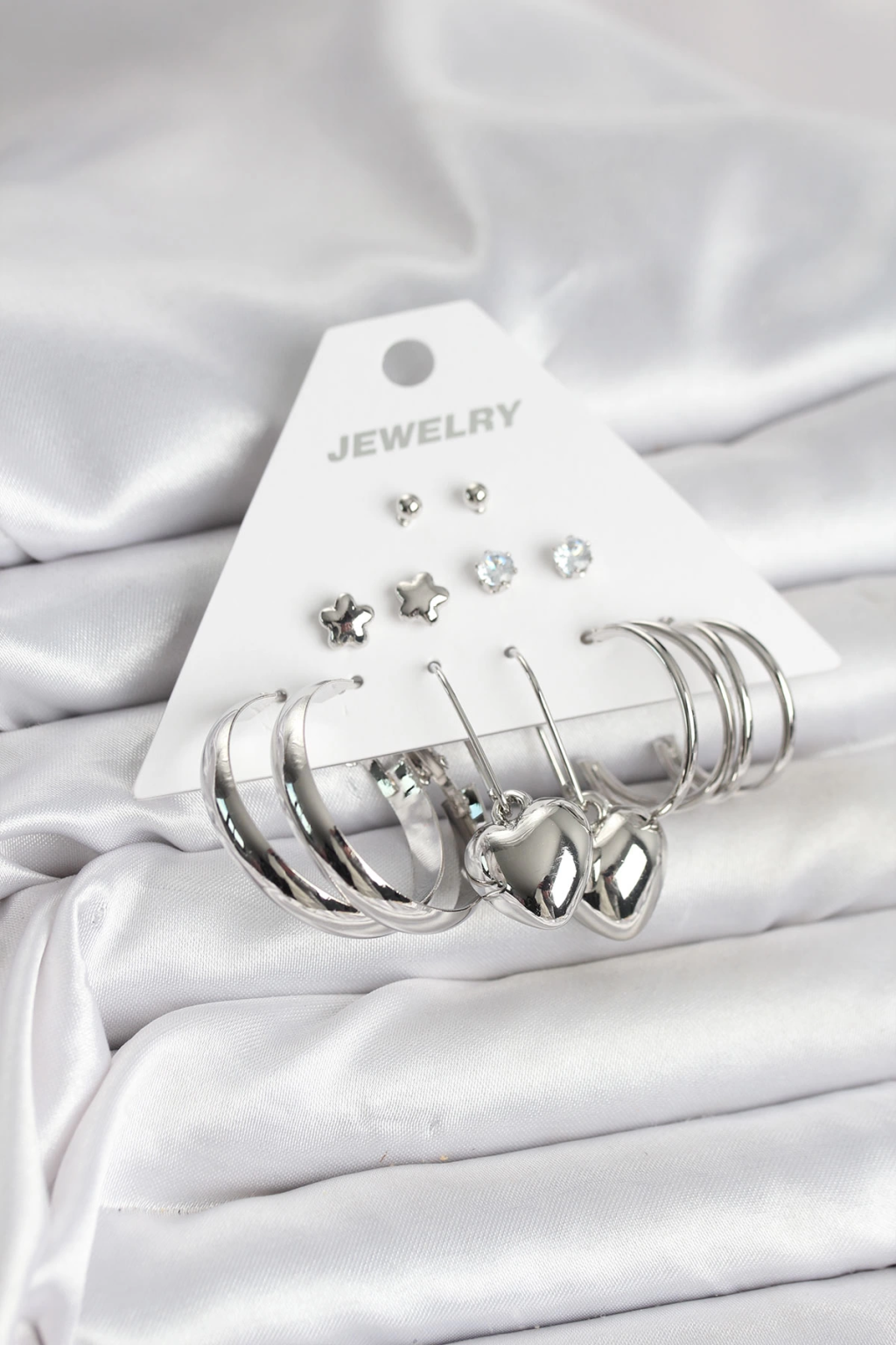 BFS Pirinç Gümüş Renk 6 Çift Kadın Küpe Seti
