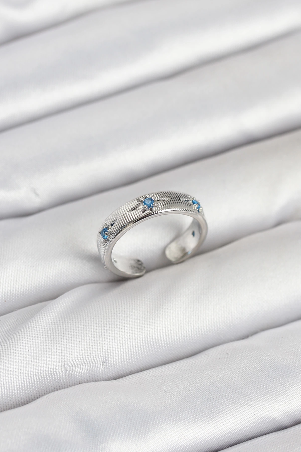 BFS Pirinç Gümüş Renk Mavi Zirkon Taşlı Kutup Yıldızı Model Kadın Yüzük