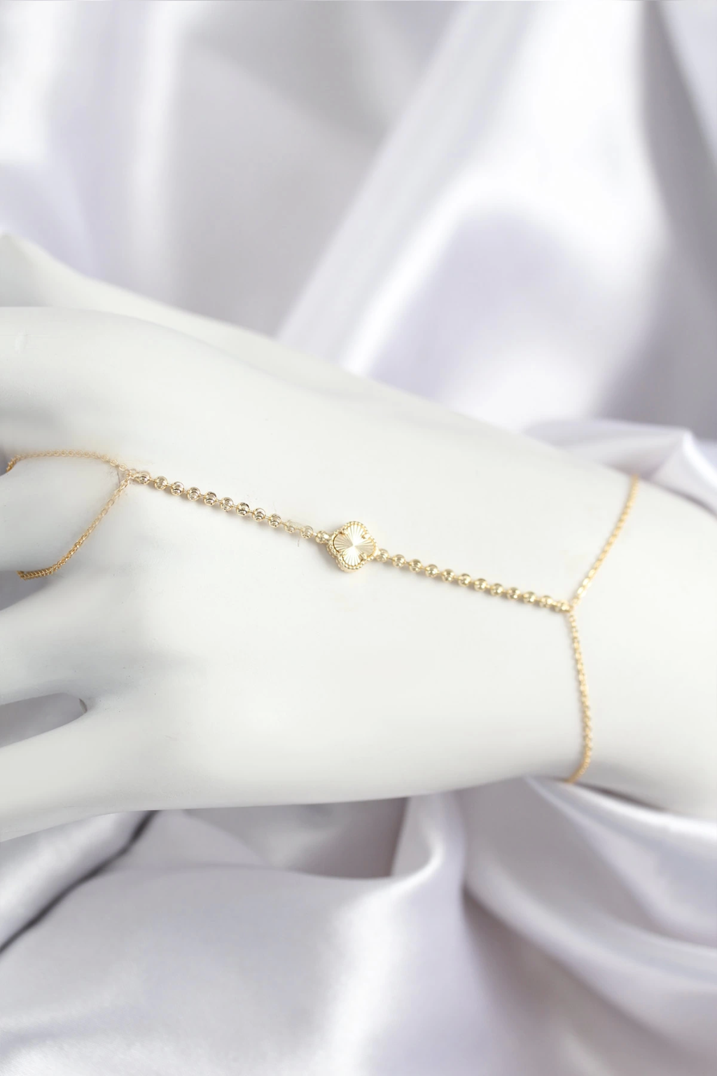 BFS Pirinç Zirkon Taşlı Yonca Model Gold Renk Şahmeran