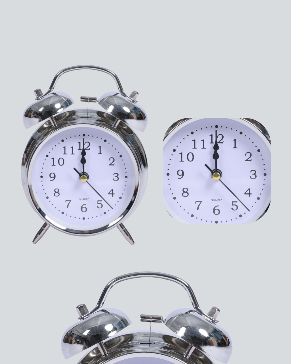 Dekoratif Yuvarlak Gümüş Sessiz Işıklı Masa Üstü Çalar Saat Alarmlı ve Şık Tasarım