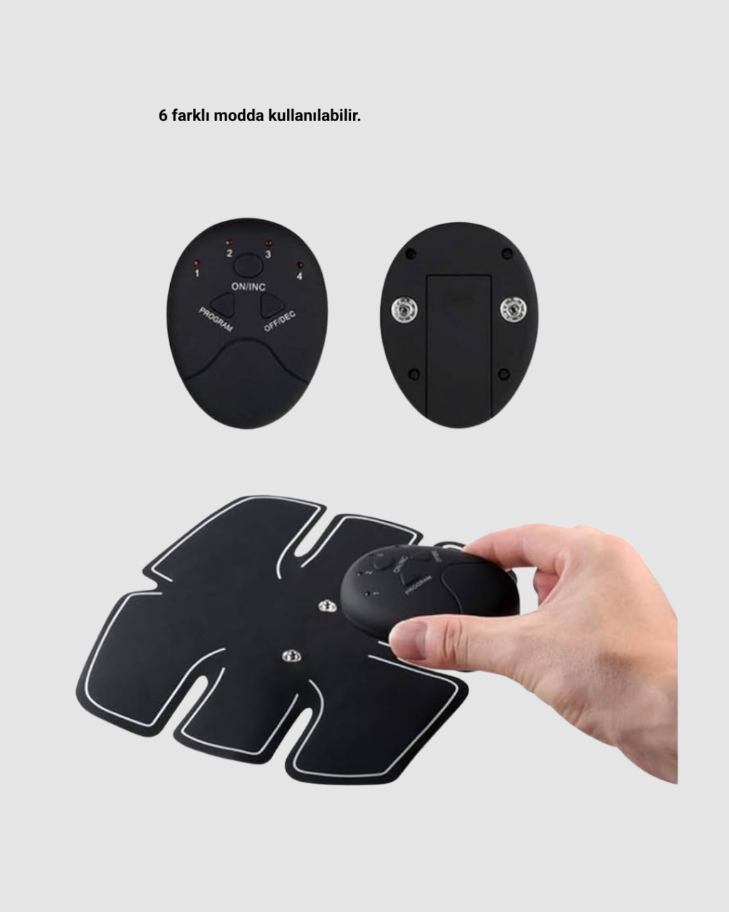 Bu elektronik EMS kas uyarıcı cihaz, göbek ve kol kaslarını güçlendirmek, sıkılaştırmak ve düzenli bir çalışma rutini oluşturmak isteyen kullanıcılar için geliştirilmiş bir vücut şekillendirme ürünüdür. 6 farklı çalışma modu ile hem yeni başlayanlar hem de düzenli spor yapan kişiler için uygun seçenekler sunar. Göbek pedi ve iki adet kol pedi sayesinde vücudun birden fazla bölgesine aynı anda uygulanabilir, böylece daha verimli bir çalışma deneyimi sağlar.Kullanımı son derece kolaydır. Jel pedleri cilde yapıştırmadan önce uygulama yapılacak bölgenin temiz ve kuru olması önerilir. Pedler, vinil kapaklarından çıkarıldıktan sonra göbek ya da kol bölgesine rahatça yapıştırılabilir. Sonrasında cihazdan çalışma modu ve çıkış seviyesi seçilerek uygulama başlatılır. Her bir mod 12 dakikalık çalışma süresine sahiptir. Bu süre, kasların ideal uyarılmasını sağlayacak şekilde tasarlanmıştır.Cihaz, elektriksel kas uyarımı (EMS) teknolojisiyle çalışır ve kaslara mikro titreşim göndererek kasılma–gevşeme hareketleri oluşturur. Bu sayede spor yapmadan kas aktivitesi artar ve vücut şekillendirme sürecine katkı sağlanır. Otomatik kapanma özelliği, cihaz kullanılmadığında enerji tasarrufu sağlar ve güvenli kullanım sunar.Göbek bölgesi ve kollar için özel tasarlanan bu cihaz, spor salonuna gitme imkanı bulamayan veya günlük rutinine ek bir destek arayan kullanıcılar için ideal bir çözümdür. Hafif ve taşınabilir yapısı sayesinde evde, işte veya seyahatte rahatça kullanılabilir. Şerit şeklindeki ergonomik pedler, vücuda uyum sağlayarak konforlu bir kullanım deneyimi sunar.Hem kolay kullanım sunması hem de vücut şekillendirmeye yardımcı olmasıyla bu EMS kas uyarıcı cihaz, günlük bakım rutininizi güçlendiren modern bir teknolojik destek sunar.