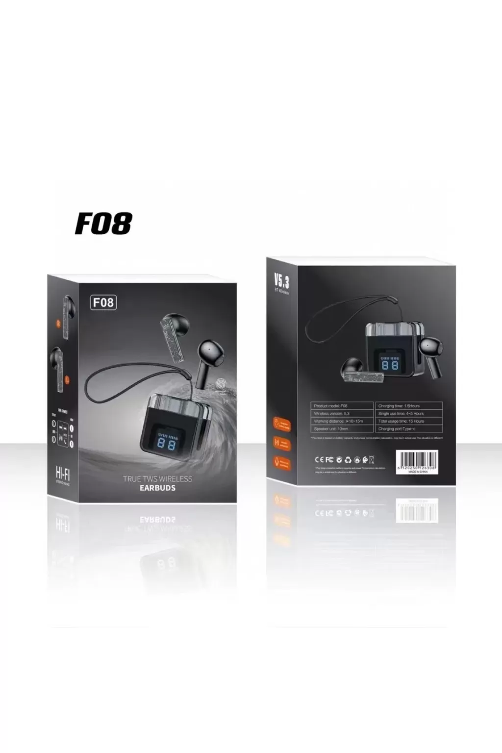 Karler Bass F08 Dijital Şarj Göstergeli TWS Bluetooth Kulaklık - Siyah