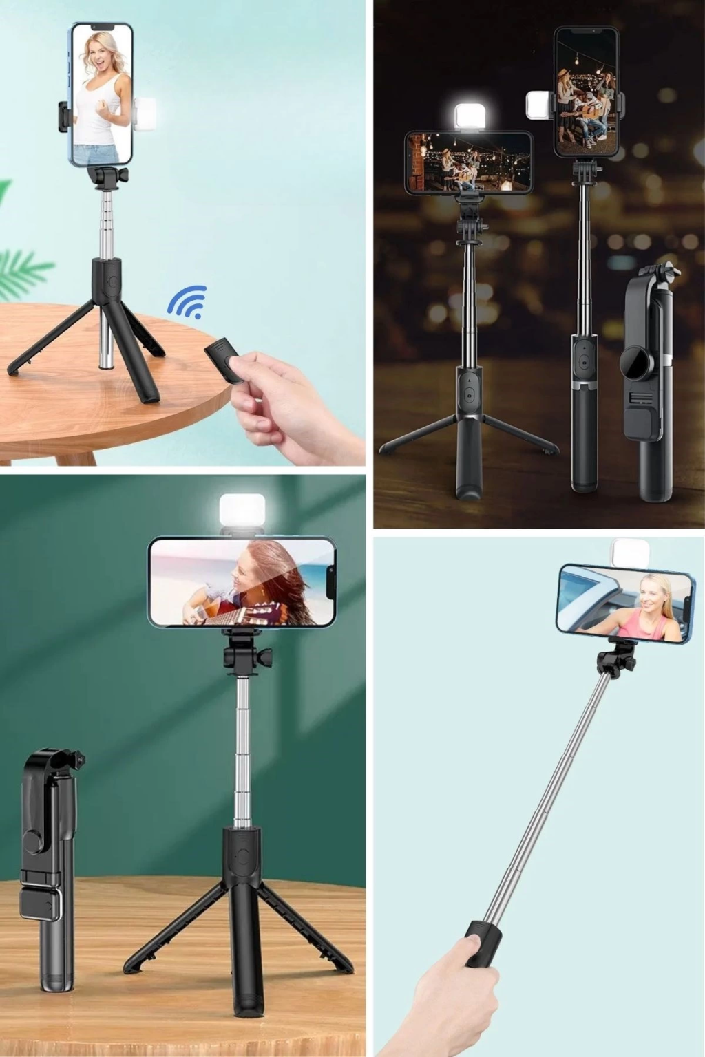 Kendiliğinden Işıklı Masaüstü Tripod Olabilen Telefon Tutuculu Kablosuz Kumandalı Selfie Çubuğu