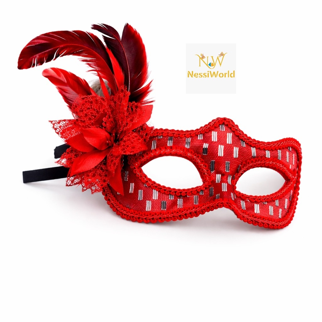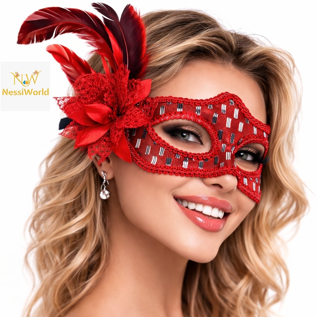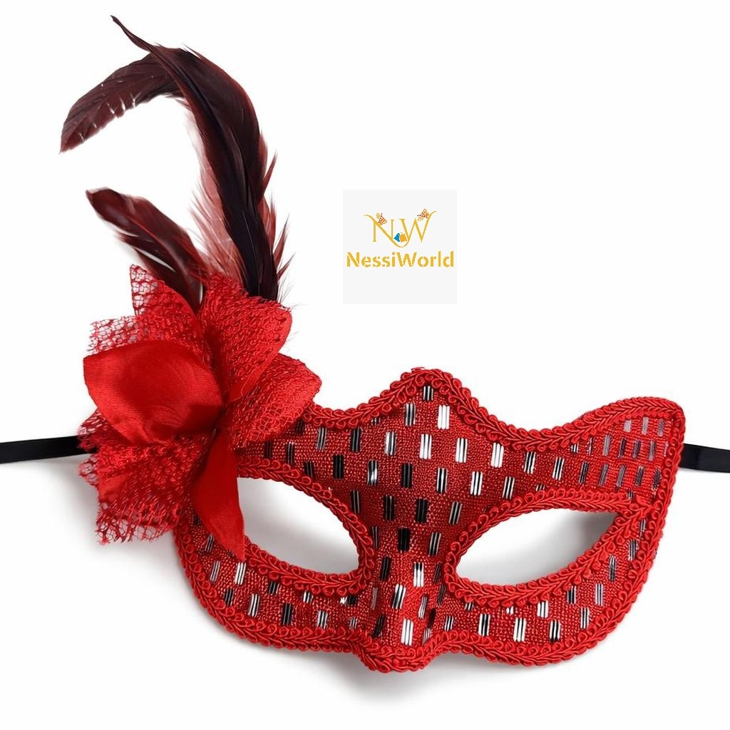 Kırmızı Tüylü Balo Maskesi Kadın Parti Aksesuarı
