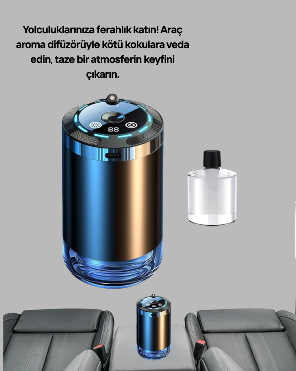 Araç difüzörü yalnızca hoş koku yaymakla kalmaz, aynı zamanda nemlendirici fonksiyonu ile hava kalitesini artırır. Kuruluğa karşı etkili bir çözüm sunar. Aromaterapi özelliği sayesinde sakinlik ve tazelik hissi verir. Kompakt tasarımı ile araç içi kullanıma mükemmel uyum sağlar.