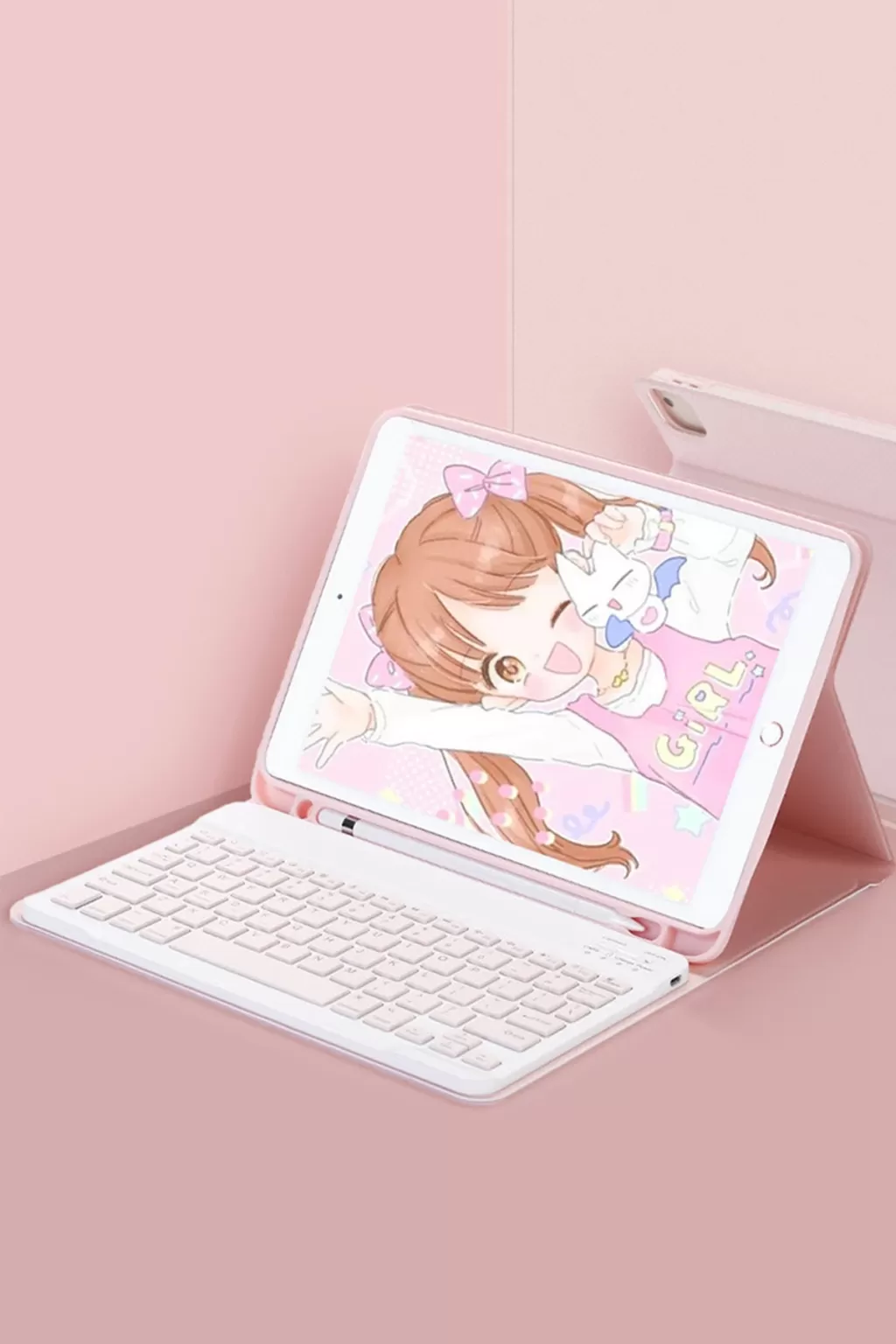 Newface iPad Pro 12.9 (2022) Kılıf KC01 Smart Klavyeli Tablet Kılıfı - Pembe