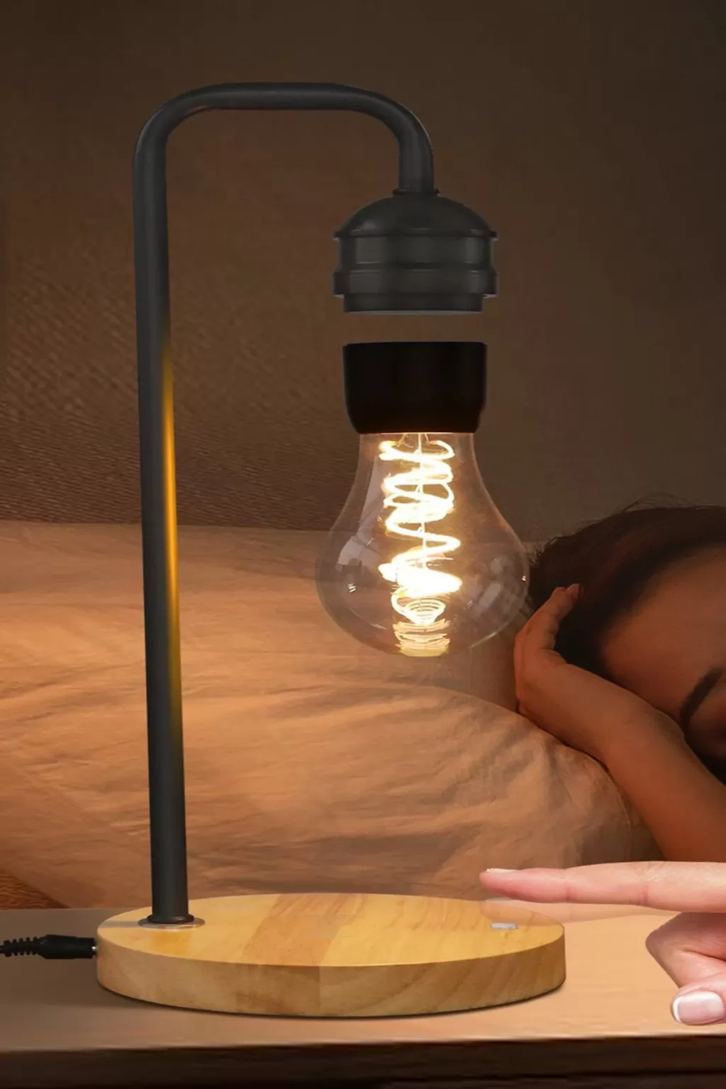 Newface XF01 Ampul Görünümlü Kablosuz Şarj Özellikli Gece Lambası - Siyah