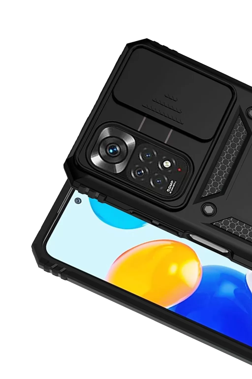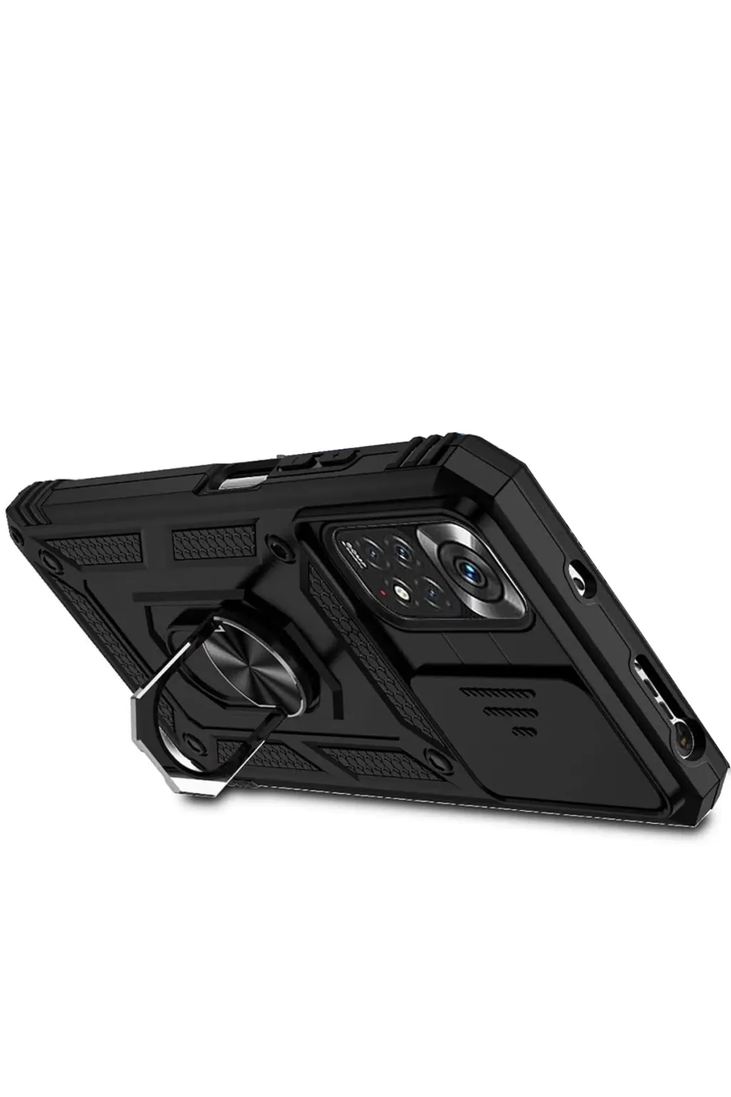 Newface Xiaomi Redmi Note 11 Pro Kılıf Pars Lens Yüzüklü Silikon - Siyah