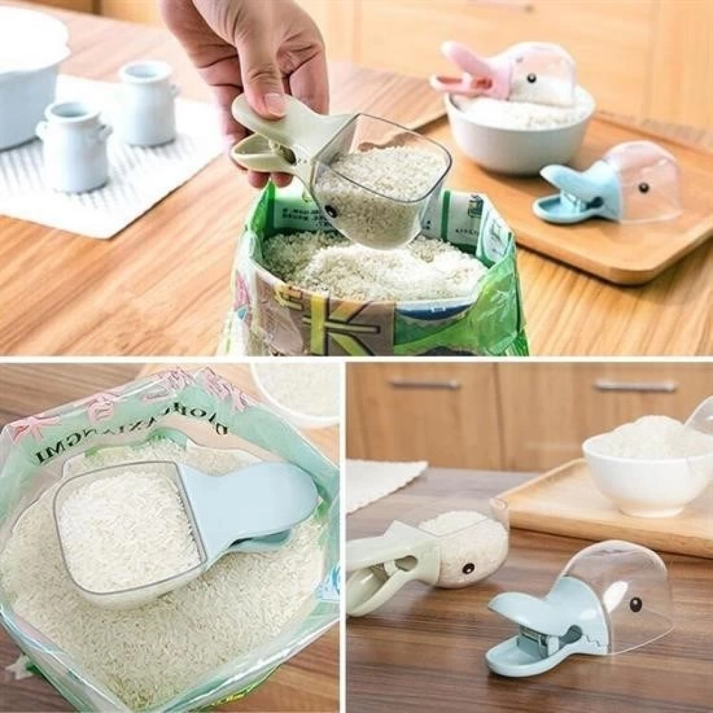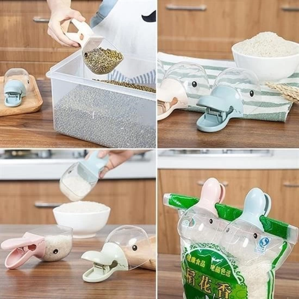 Ördek Tasarımlı Mandallı Tazelik Koruyan Ölçekli Kuru Mama Kaşığı Mama Ölçeği