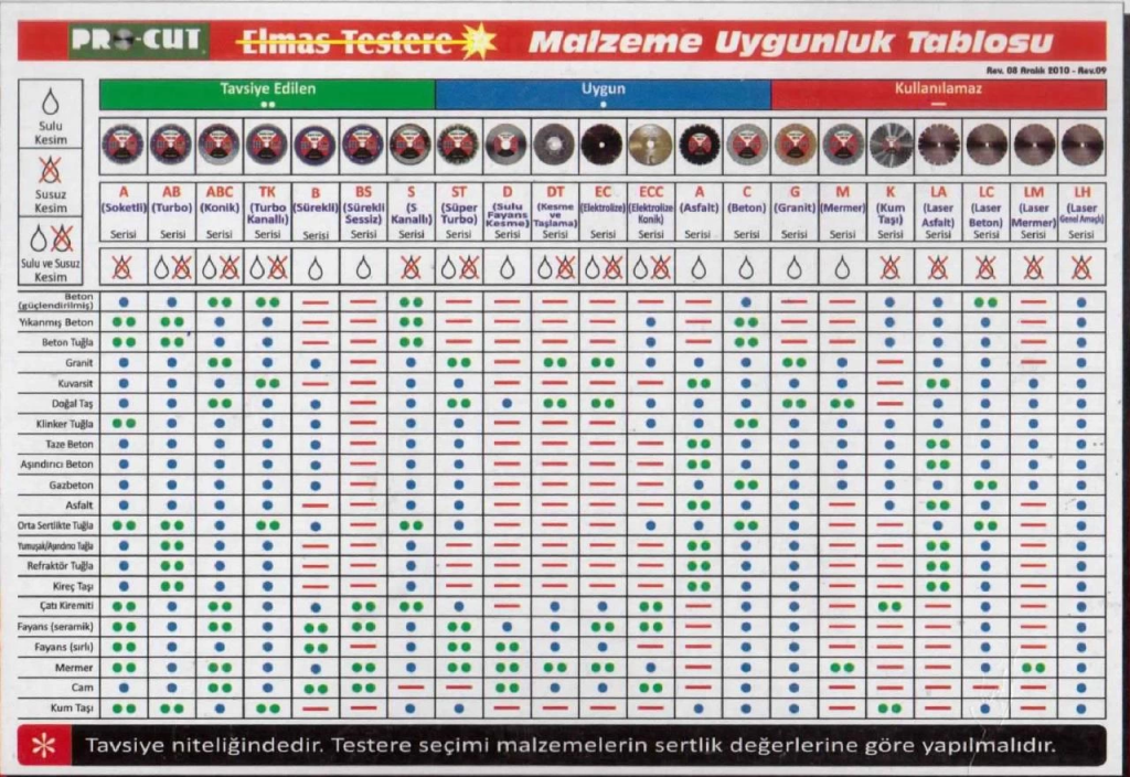 Yıkanmış Beton, Beton Tuğla, Klinker Tuğla, Orta Sertlikte tuğla, Çatı kremiti, Fayans (seramik), Fayans (sırlı), Mermer Kum Taşı